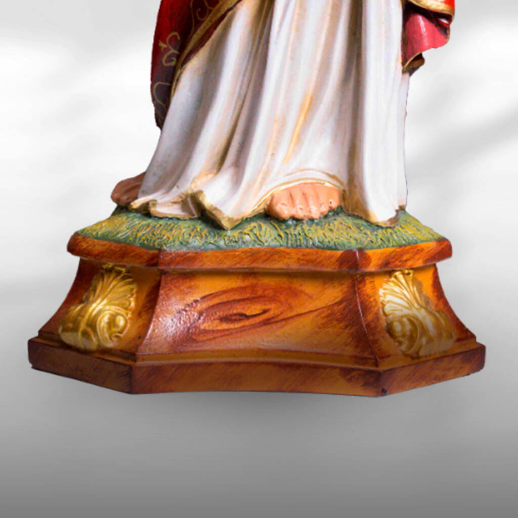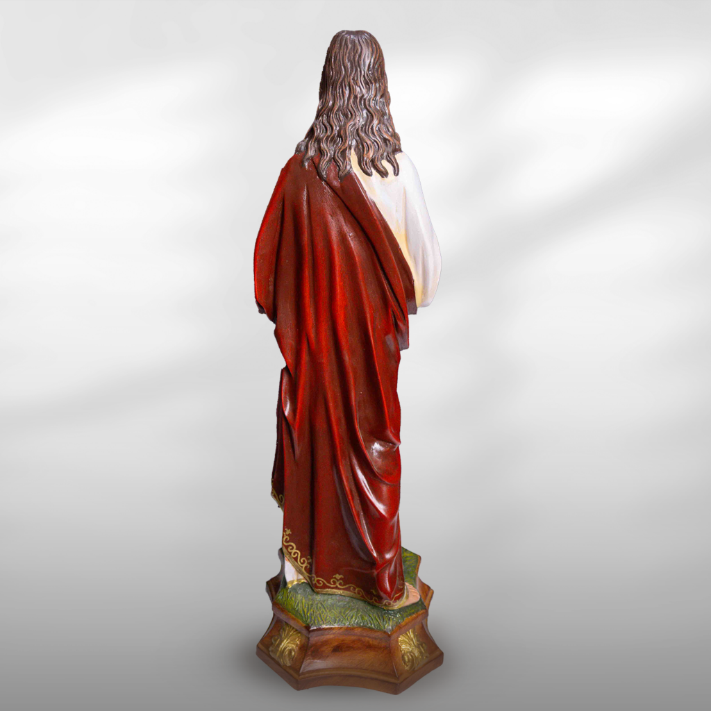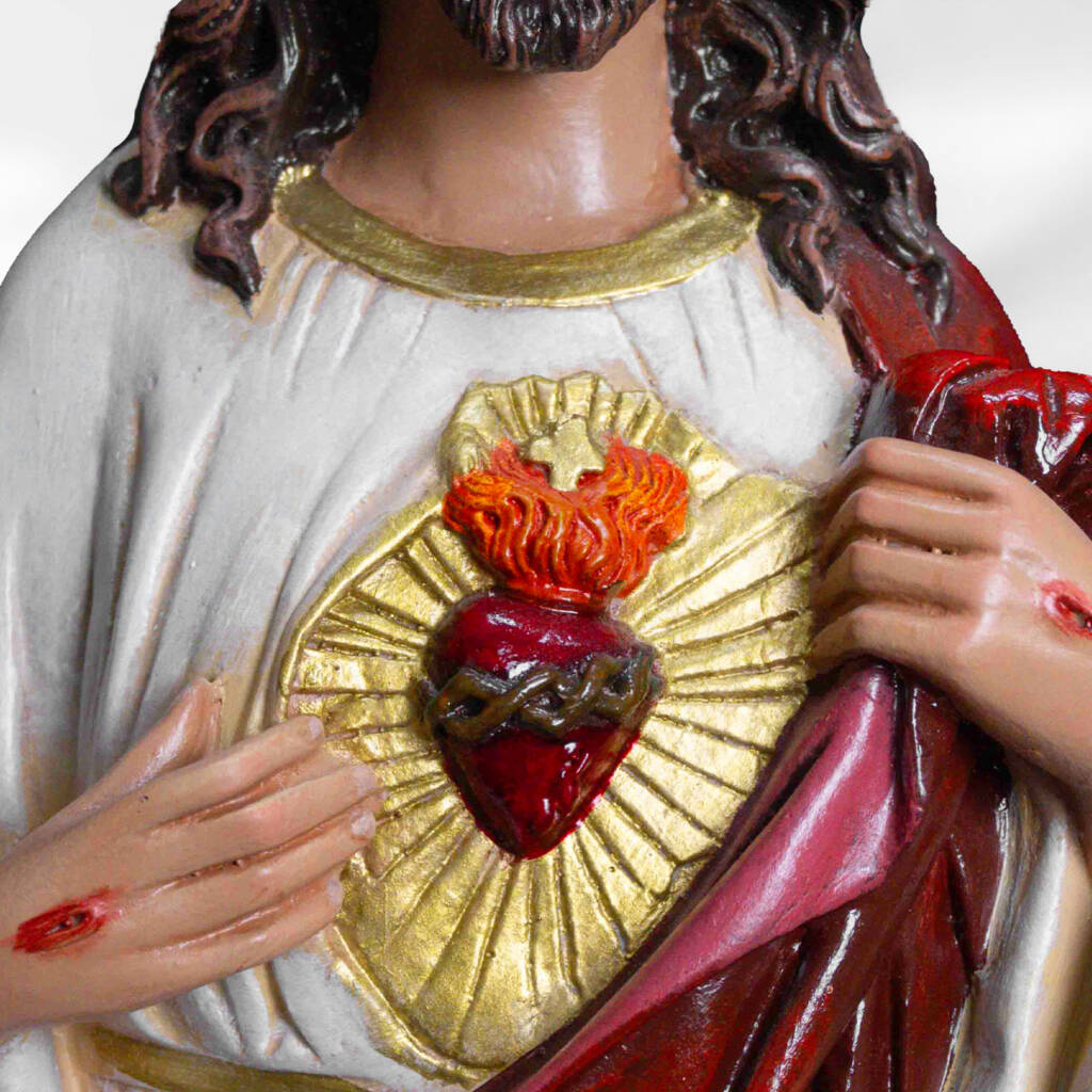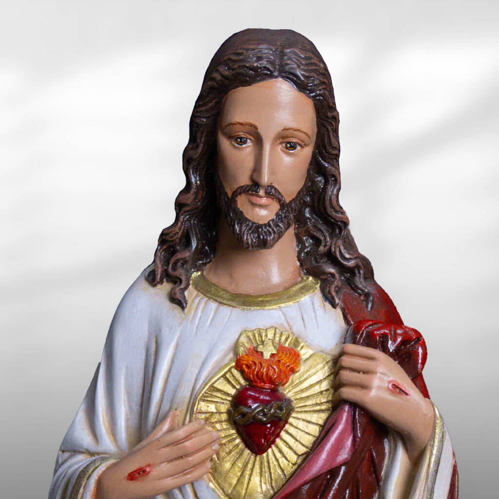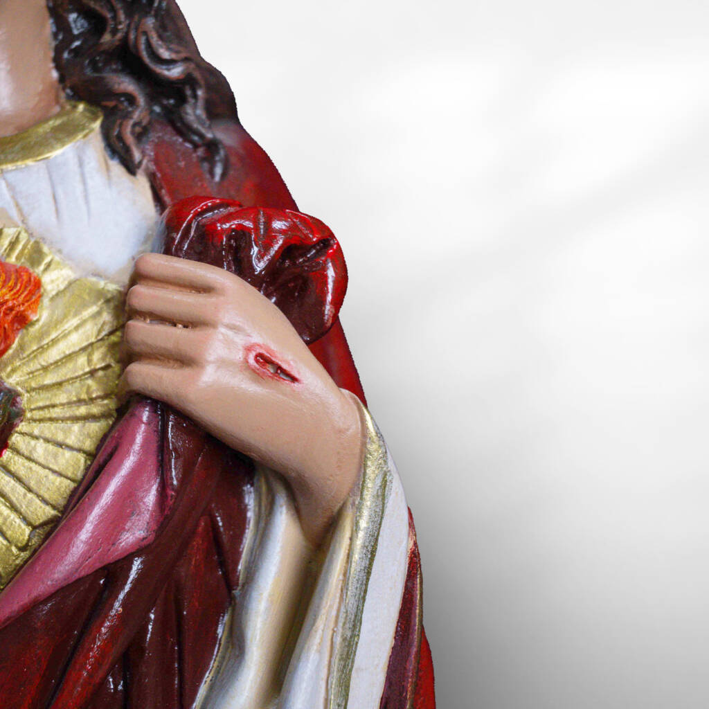 A ferida na mão de Jesus recorda o sacrifício da cruz. Não é apenas marca de dor, mas sinal eterno de amor oferecido. Ao manter a mão erguida e voltada ao Coração, Ele mostra que sua bênção nasce exatamente da entrega total que fez por nós